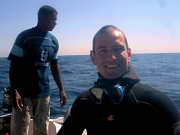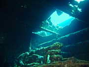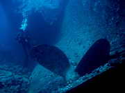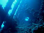 ca 1m eingedrueckt ist auch der Bug des Schiffes (lief aus voller Fahrt auf das Riff von Abu Nuhas auf)
