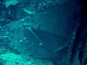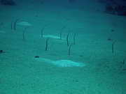 auf einem Sandfeld neben dem Wrack finden sich die scheuen Roehrenaale