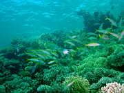 ein Schwarm Gelbflossenmeerbarben sucht nach Futter