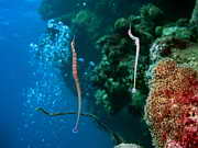 Zwei Seenadeln, die auch zur Familie der Seepferdchen gehoeren
